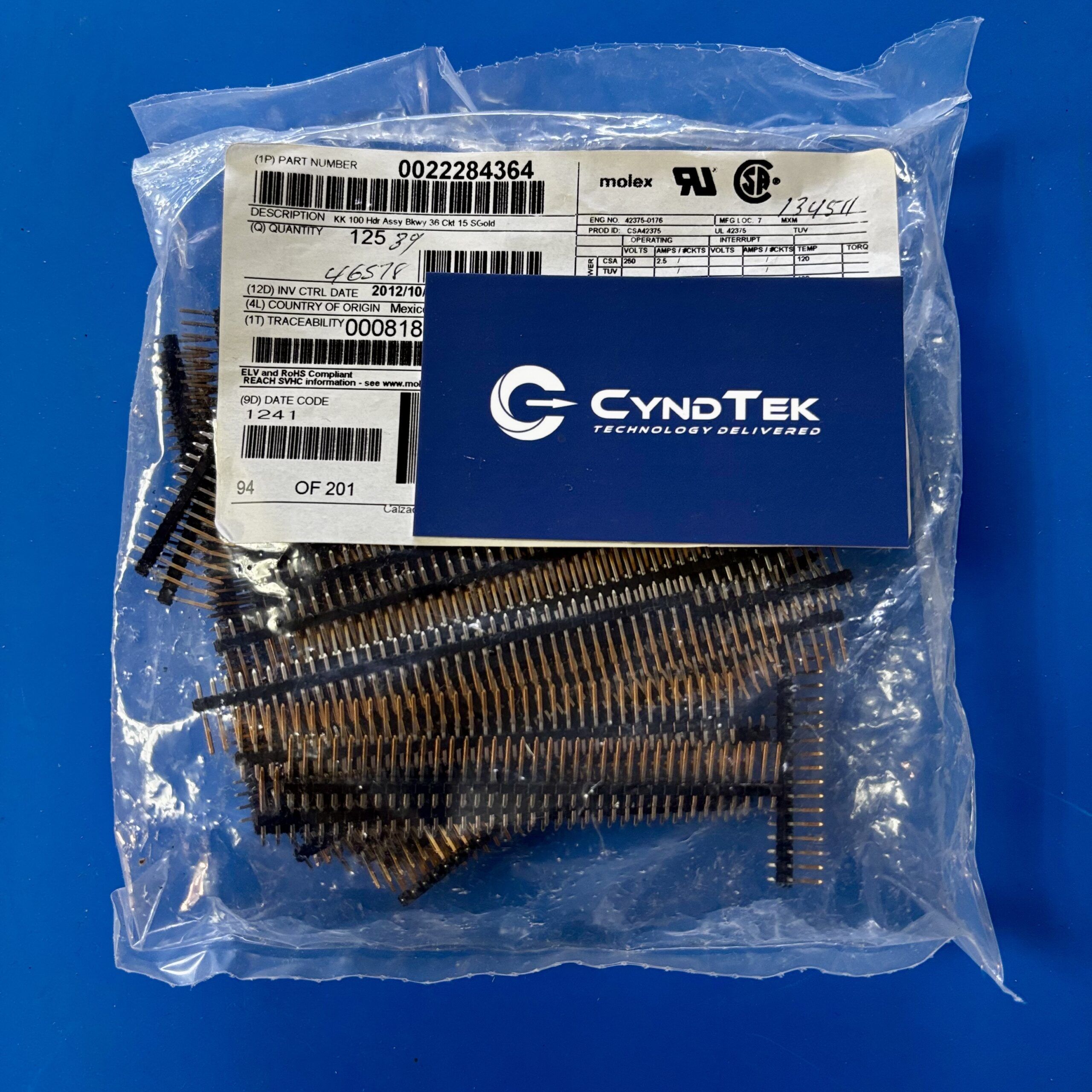The Molex 0022284364 header provides a dependable solution for board-to-board or cable-to-board connections across multiple industries. Its breakaway design allows for customization of the number of positions, offering flexibility in design configurations. The combination of gold-plated contacts and UL94 V-0 rated insulation ensures both electrical reliability and compliance with stringent safety standards. This connector is suitable for applications where space constraints and high performance are critical considerations.